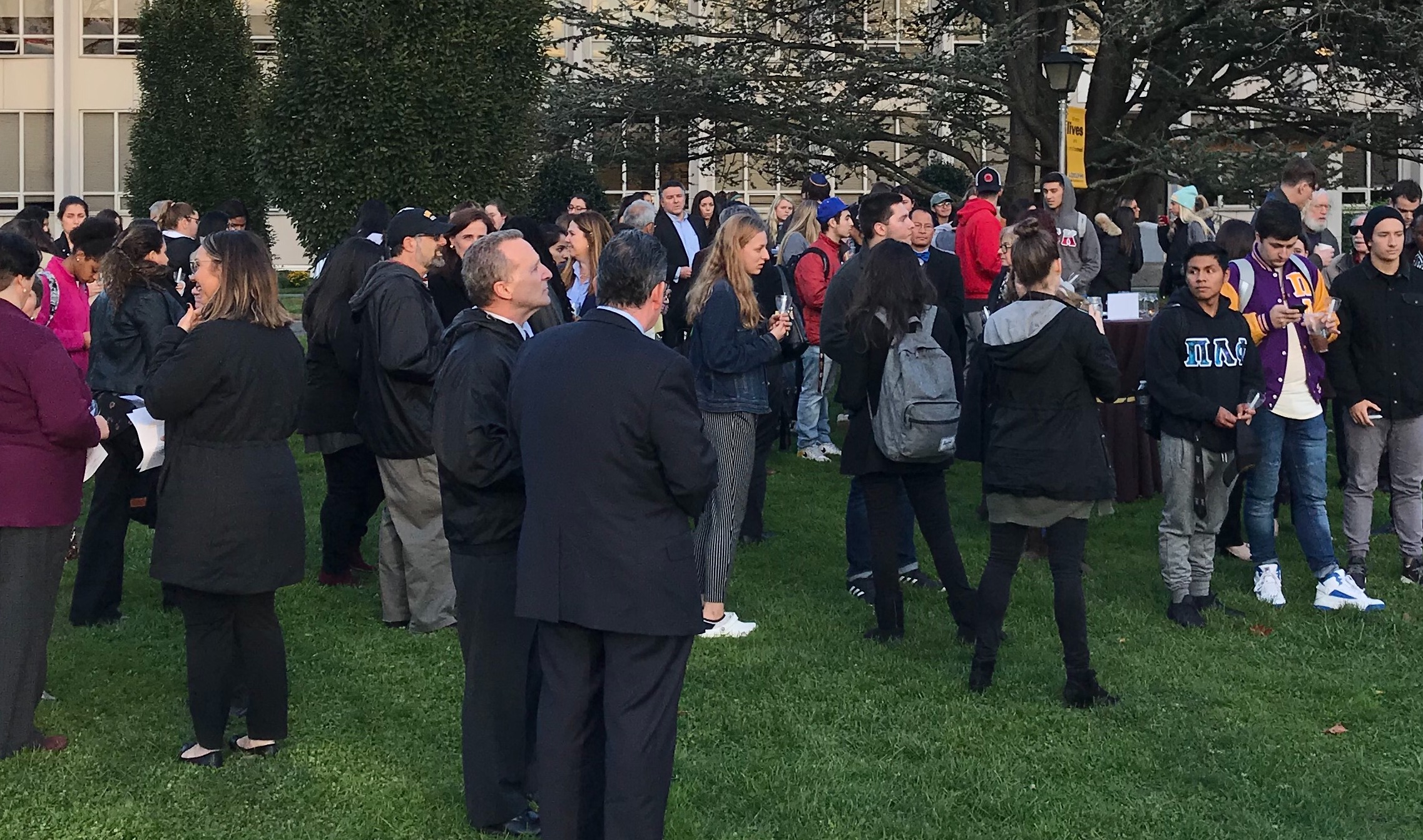 The vigil was organized by The Interfaith Center, the Jewish Student Union, Chabad, the Center for Student Involvement, the Office of Diversity and Inclusion, and the Office of the President at Adelphi University. Dean Sniffen serves as a Protestant Chaplain at Adelphi.